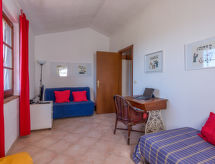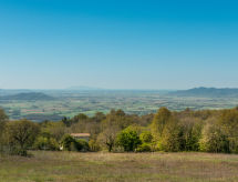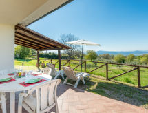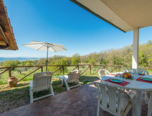 "Querceto", 3-rums-hus 60 m2 med 2 våningar. Ljus, mysigt inrett: 1 rum med 1 fransk säng (160 cm). Kombinerat kök och vardagsrum (ugn, diskmaskin, Gasspis, 4 gasflammor, frys, elektrisk kaffemaskin) med matbord, vedugn. Utgång till terrassen. Dusch/bidé/toalett. Övre våning: 1 rum med 1 säng, 1 bäddsoffa och sat-TV. Utgång till balkongen. Veduppvärmning. Värme finns inte i alla rum. Liten balkong, terrass. Terrassmöbler, utegrill, vilstolar. Mycket vacker panoramautsikt på landskapet. Till förfogande: tvättmaskin. Internet (Trådlös LAN [WLAN] , gratis). Notera: rökfri lägenhet. Max 2 husdjur/hundar tillåtna.- Utrustning