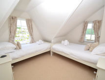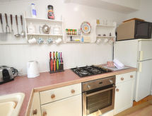 4-rums-stuga med 3 våningar. Rymlig och ljus, komfortabelt och smakfullt: öppet vardagsrum med TV, flatscreen TV och DVD. Öppet kök (4 kokplattor, ugn, mikrovågsugn, frys) med matbord. Sep. Toalett, dubbelt handfat. Uppvärmning. Övre våning: 1 dubbelrum med 1 dubbelsäng. Badkar/dusch/toalett. Uppvärmning. 2:a våningen 1 dubbelrum med 1 dubbelsäng. 1 rum med 2 sängar. Terrassmöbler. Vacker utsikt på floden. Till förfogande: tvättmaskin, torktumlare. Internet (Trådlös LAN [WLAN] , gratis). Notera: rökfritt hus.- Kännetecken för boendet