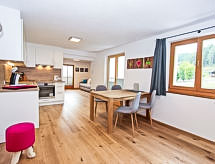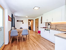 2-rums-lägenhet 50 m2 på 1. våningen. Objekt passande för 2 vuxna + 2 barn. Fullständigt renoverad år 2017, mycket komfortabelt och smakfullt inredd: 1 dubbelrum. Vardags-/sovrum med 1 bäddsoffa för 2 personer och sat-TV (flatscreen TV). Utgång till balkongen. Stort, öppet kök (ugn, diskmaskin, 4 kokplattor - glaskeramikhäll, elektrisk kaffemaskin, Kapslar till kaffemaskin (Senseo)) med matbord. Utgång till terrassen. Dusch/toalett. Balkong, stor terrass 14 m2. Terrassmöbler. Härlig panoramautsikt på bergen, dalen och landskapet. Till förfogande: hårtork. Notera: rökfri lägenhet. 1 husdjur/hund tillåtet.- Utrustning