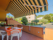3-rums-lägenhet 80 m2, på bottenvåningen. Praktiskt inredd: vardagsrum med sat-TV. Utgång till terrassen. 1 rum med 1 fransk säng (160 cm). Utgång till terrassen. 1 rum med 2 sängar (80 cm). Öppet kök (ugn, 4 gasflammor, vattenkokare, mikrovågsugn, frys, elektrisk kaffemaskin) med matbord. Utgång till terrassen. Badkar/dusch/bidé/toalett. Gasuppvärmning. Terrass täckt terrass 40 m2, trädgårdssittplats, gräsmatta 40 m2. Terrassmöbler, utegrill, vilstolar (2), förråd. Till förfogande: tvättmaskin, kassaskåp, myggnät. Internet (Trådlös LAN [WLAN] , gratis). Parkeringsplats (inhägnad) vid huset. Notera: rökfri lägenhet. Privat entré, privat entré.- Kännetecken för boendet