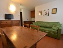 Komfortabelt residens "Residence Primula", 1'399 meter över havsytan, med 4 våningar. I centrum av Madesimo, i ett bostadsområde, utmärkt läge: mitt i centrum men ändå lugnt, direkt vid skogsbrynet, 300 m från skidområdet. För gemensamt bruk: liten, välskött trädgård. Terrass, trädgårdsmöbler. I anläggningen: sällskapsrum med TV, hiss, cykelförråd, skidförråd. Privat garage, allmän parkering på gatan. Välkända sjöar nås enkelt: Lago di Como 45 km. Vandringsområden Andossi - Giardino Alpino Valcava, Lago d'Emet - Pizzo Spadolazzo, Sentiero del Cardinello, Val Febbraro.Interior