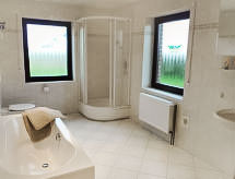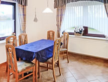 Eilsum 6 km från Greetsiel: Stort enfamiljshus "Rettkowski", omgiven av fält. I utkanten, lugnt läge, 13 km från havet, 24 km från stranden, i en återvändsgränd. I huset: centralvärme. Parkering (för 2 bilar) vid huset. Affär 6 km, stormarknad 6 km, restaurang 500 m, bageri 3 km, café 3 km, busshållplats 3 km, järnvägsstation 19 km, färja 19 km, sandstrand 24 km. Golfbana (9 hål) 21 km. Närbelägna sevärdheter: Pilsumer Leuchtturm 10 km. Notera: fordon rekommenderas.Interior