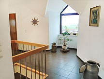 5-rums-hus 150 m2 med 2 våningar, på bottenvåningen. Rymlig och ljus: vardagsrum med sat-TV och stereoanläggning. 1 rum med 1 dubbelsäng (2 x 100 cm, längd 200 cm). Kök (ugn, diskmaskin, 4 kokplattor - glaskeramikhäll, elektrisk kaffemaskin) med matbord. Sep. Toalett, badkar/dusch/toalett. Övre våning: 1 rum med 1 dubbelsäng (2 x 100 cm, längd 200 cm). 1 rum med 1 fransk säng (140 cm, längd 200 cm). Dusch/toalett. Stor terrass. Terrassmöbler. Vacker utsikt på landskapet. Till förfogande: tvättmaskin. Internet (Trådlös LAN [WLAN] , gratis). Notera: rökfritt hus. Brandvarnare, brandsläckare.- Utrustning