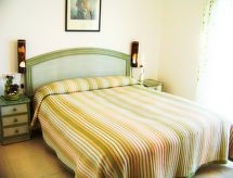 "Villa Roberto", 4-rums-villa 105 m2 med 2 våningar. Komfortabelt och mysigt inredd: vardags-/matrum med matbord och sat-TV (flatscreen TV), luftkonditionering och fläkt. Utgång till trädgårdssittplatsen. 1 rum med 2 sängar (90 cm, längd 190 cm), luftkonditionering. Kök (ugn, diskmaskin, 4 kokplattor - glaskeramikhäll, brödrost, vattenkokare, mikrovågsugn, elektrisk kaffemaskin). Dusch/toalett. Övre våning: 1 rum med 2 sängar (90 cm, längd 190 cm), luftkonditionering. 1 rum med 1 fransk säng (150 cm, längd 190 cm), TV, luftkonditionering och fläkt. Utgång till terrassen. Badkar/bidé/toalett. Uppvärmning. Liten terrass, trädgårdssittplats. Terrassmöbler, utegrill. Till förfogande: tvättmaskin, strykjärn, hög barnstol, barnsäng, hårtork. Internet (Trådlös LAN [WLAN] , gratis). Parkeringsplats (inhägnad, 2 Bilar). Lämpligt för barnfamiljer. 2 husdjur/hundar tillåtna. HUTT009207- Kännetecken för boendet