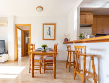 Rocamar: Modernt, vackert, mysigt flerfamiljshus "Rocamar". I orten 1 km från centrumet av l'Ampolla, soligt läge, 50 m från havet, 250 m från stranden. För privat bruk: trädgård (inhägnad) med gräsmatta 45 m2, allmän parkering på gatan. Stormarknad 1 km, restaurang 50 m, järnvägsstation "l'ampolla" 1.5 km. Närbelägna sevärdheter: Parque Natural del Ebro 5 km, parque Portaventura 65 km, Pitch & Putt 2 km.Interior