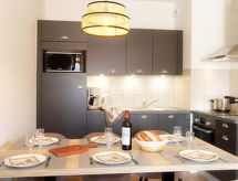"Rochebrune Les Cimes", 2-rums-lägenhet 45 m2. Objekt passande för 4 vuxna + 2 barn. Vardags-/sovrum med 1 bäddsoffa för 2 personer och TV (flatscreen TV). 1 rum med 1 fransk säng. Alkov med 1 x 2 våningssängar. Kokvrå (4 kokplattor, diskmaskin, brödrost, vattenkokare, mikrovågsugn, elektrisk kaffemaskin). Badkar, sep. Toalett. Till förfogande: hårtork. Internet (Trådlös LAN [WLAN] , gratis). Parkeringsplats (täckt). Notera: lämpligt för barnfamiljer. Max 1 husdjur/hund tillåtet. Brandvarnare.- Kännetecken för boendet