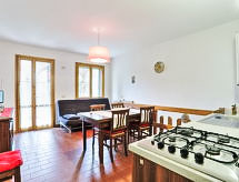 "Rododendro", 3-rums-lägenhet 65 m2, på bottenvåningen. Vardags-/matrum med 1 bäddsoffa för 2 personer (160 cm, längd 190 cm), sat-TV och flatscreen TV. 1 dubbelrum. Kokvrå (4 kokplattor, diskmaskin) med 1 bäddsoffa för 2 personer. Dusch/bidé/toalett. Nedre våning: 1 rum, utan fönster med 2 sängar och dusch/bidé/toalett. Luftkonditionering (extra). Trädgård 30 m2. Terrassmöbler. Till förfogande: myggnät. Max 1 husdjur/hund tillåtet.- Kännetecken för boendet