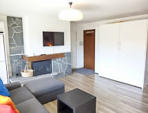 1-rums-lägenhet 35 m2 på 2. våningen, sydläge. Objekt passande för 2 vuxna + 2 barn. Delvis renoverad år 2015: vardags-/matrum med 1 x 2 våningssängar (80 cm, längd 190 cm), 1 dubbelskåpsäng (2 x 80 cm, längd 190 cm), öppen spis, matbord, kabel-TV och DVD. Utgång till balkongen. Öppet kök (ugn, 4 Induktionshäll, brödrost, vattenkokare, mikrovågsugn, elektrisk kaffemaskin, Kapslar till kaffemaskin (Dolce Gusto) extra, fondueset (ost )). Badkar/bidé/toalett. Liten balkong, sydläge. Terrassmöbler. Vacker utsikt på dalen. Till förfogande: hårtork. Internet (Trådlös LAN [WLAN] , gratis). Garage nr 17, höjd 183 cm, bredd 200 cm. Notera: rökfri lägenhet.- Utrustning