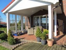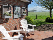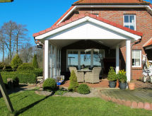 Wiarden 6 km från Horumersiel: 2-familjshus "Rosenboom". I utkanten, 24 km från centrumet av Wilhelmshaven, 6 km från havet, 8 km från sjön. För privat bruk: tomt 700 m2 (inhägnad), välskött trädgård med gräsmatta och planteringar. Terrass, trädgårdsmöbler, utegrill. I huset: centralvärme. Parkering vid huset. Stormarknad 3 km, järnvägsstation "Jever" 16 km, sandstrand "Hooksiel" 6 km, grässtrand "Horumersiel" 6 km, utomhusbad 6 km, simhall 6 km. Marina 6 km.Interior