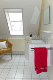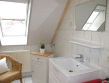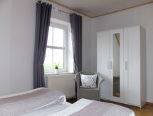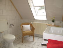 3-rums-lägenhet 50 m2 med 2 våningar på 1. våningen. Renoverad år 2019: övre våning: vardags-/matrum med snedtak med sat-TV, radio och DVD. 1 rum med snedtak med 1 dubbelsäng. Öppet kök (ugn, 4 kokplattor - glaskeramikhäll, brödrost, vattenkokare, elektrisk kaffemaskin). Dusch/toalett. Takvåning: 1 rum med snedtak med 2 sängar. Till förfogande: Internet (Trådlös LAN [WLAN] , gratis). Notera: rökfri lägenhet. Brandvarnare.- Utrustning