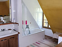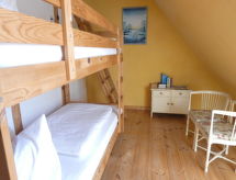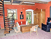 3-rums-hus 110 m2 med 2 våningar, på bottenvåningen. Smakfullt och mysigt inrett: vardagsrum med kabel-TV (flatscreen TV), video, stereoanläggning, DVD och vedugn. Utgång till trädgården, till terrassen. Öppet kök (ugn, diskmaskin, mikrovågsugn, elektrisk kaffemaskin) med matbord. Golvvärme. Övre våning: (spiraltrappa) 1 rum med snedtak med 1 x 2 våningssängar. 1 dubbelrum med snedtak. Badkar/toalett. 2 terrasser 50 m2. Terrassmöbler, utegrill. Till förfogande: tvättmaskin, hög barnstol. Internet (Trådlös LAN [WLAN] , gratis). Notera: rökfri lägenhet.- Utrustning