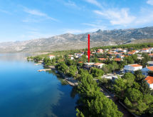 Hyreshus "Rovanjska". 300 m från centrumet av Rovanjska, 8 km från centrumet av Starigrad-Paklenica, i en sluttning, 10 m från havet, 10 m från stranden, i en återvändsgränd. För gemensamt bruk: tomt 500 m2, planteringar och träd. Utedusch, utegrill. I huset: internetanslutning. Allmän parkering på gatan. Affär 300 m, strand vid klippor 10 m.Interior