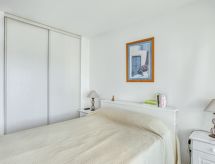 2-rums-lägenhet 45 m2 på 2. våningen. Vardags-/matrum med 1 bäddsoffa för 2 personer (1 x 140 cm, längd 190 cm), TV. Utgång till terrassen. 1 rum med 1 fransk säng (1 x 140 cm, längd 190 cm). Utgång till terrassen. Öppet kök (ugn, diskmaskin, 3 Induktionshäll, mikrovågsugn, frys, elektrisk kaffemaskin). Dusch, sep. Toalett. Terrass. Terrassmöbler. Vacker utsikt på hamnen. Till förfogande: tvättmaskin. Internet (Trådlös LAN [WLAN] , gratis). Notera: rökfri lägenhet, ingen parkeringsplats. TV bara FR. Brandvarnare.- Utrustning