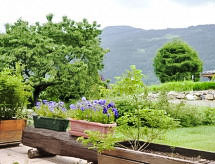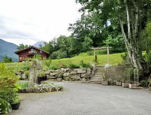 2-rums-lägenhet 45 m2, på bottenvåningen, sydostläge. Vardags-/matrum med 1 bäddsoffa för 2 personer (140 cm), TV och stereoanläggning. Utgång till trädgården. 1 rum med 1 fransk säng (140 cm). Öppet kök (ugn, diskmaskin, brödrost, vattenkokare, mikrovågsugn, elektrisk kaffemaskin, raclettegrill). Dusch, sep. Toalett. Oljeuppvärmning. Terrassmöbler. Mycket vacker utsikt på bergen. Till förfogande: strykjärn, hårtork. Parkeringsplats. Notera: rökfri lägenhet. Brandvarnare.- Utrustning