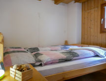 "Rustico Gatti", 3-rums-stuga 100 m2 med 3 våningar. Delvis sluttande tak, enkelt och rustikt: vardags-/matrum med öppen spis, matbord, sat-TV, radio och elektriskt värmeelement. Utgång till balkongen. 1 dubbelrum med 1 dubbelsäng (1 x 160 cm, längd 200 cm). Öppet kök (4 kokplattor, Gasspis, frys, elektrisk kaffemaskin) med vedugn. Nedre våning: dusch/toalett. Eluppvärmning, veduppvärmning, vattenberedare (150 liter). Övre våning: öppet galleri med 2 sängar (140 cm, längd 200 cm). Liten balkong. Utegrill (flyttbar), vilstolar (2), loggia. Vacker utsikt på bergen. Till förfogande: hög barnstol, barnsäng för barn under 2 år (extra), hårtork. Notera: rökfri lägenhet. 1 husdjur/hund tillåtet. Brandsläckare. NL-00002227- Utrustning