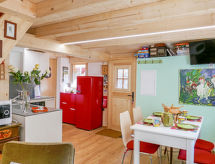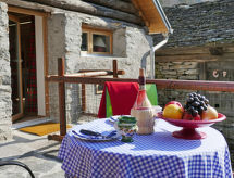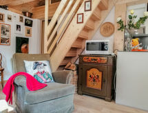 "Rustico Ginetta", 3-rums-hus 60 m2 med 2 våningar. Delvis sluttande tak, fullständigt renoverat år 2018, komfortabelt och mysigt inrett: öppet vardags-/matrum med öppen spis, sat-TV, flatscreen TV, radio, CD och eluppvärmning. Utgång till terrassen. 1 dubbelrum med 1 dubbelsäng (2 x 90 cm, längd 200 cm). Öppet kök (ugn, diskmaskin, 4 kokplattor - glaskeramikhäll, mikrovågsugn, elektrisk kaffemaskin, raclettegrill, fondueset (chinoise, ost )). Dusch/toalett. Eluppvärmning, veduppvärmning. Övre våning: (brant trappa) öppet galleri med 1 säng (80 cm, längd 200 cm) med 1 säng (90 cm, längd 200 cm) med 1 säng (120 cm, längd 200 cm). Trädgårdssittplats. Terrassmöbler, utegrill, vilstolar (2). Vacker utsikt på bergen och skogen. Till förfogande: tvättmaskin, hög barnstol, barnsäng för barn under 2 år (extra), hårtork, ved (extra). Notera: lämpligt för barnfamiljer. Rökfritt hus. Max 3 husdjur/hundar tillåtna. Brandsläckare. NL-00003126- Utrustning