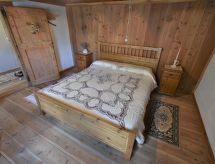 5-rums-hus 100 m2 med 3 våningar. Delvis sluttande tak, renoverat år 2021, rustikt och med mycket trä inrett: vardags-/matrum, takhöjd 190 - 205 cm med matbord och TV (flatscreen TV), radio och vedugn. Öppet kök vid ingången (4 gasflammor, brödrost, vattenkokare, mikrovågsugn, elektrisk kaffemaskin) med takhöjd 190 - 205 cm, matbord och vedugn. Utgång till trädgården. Övre våning: 1 rum, takhöjd 185 - 200 cm med 1 fransk säng (140 cm). 1 rum, takhöjd 185 - 200 cm med 1 säng. 1 dubbelrum, takhöjd 185 - 200 cm. Dusch/bidé/toalett. 2:a våningen 1 stort rum med snedtak, takhöjd 60 - 200 cm med 2 sängar. Trägolv. Vilstolar (2). Vacker utsikt på bergen och dalen. Till förfogande: tvättmaskin, hårtork, ved (gratis). Notera: rökfri lägenhet. Privat entré, privat entré. CIR: 014058-LNI-00001- Utrustning