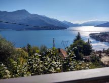 "Rustico Simona (GRV255)", 3-rums-hus 65 m2 med 2 våningar. Renoverat, modernt och smakfullt inrett: vardags-/sovrum med 1 bäddsoffa, öppen spis, matbord, sat-TV, radio och CD. Utgång till terrassen. Öppet kök (ugn, diskmaskin, 4 gasflammor, brödrost, mikrovågsugn, frys, elektrisk kaffemaskin). Sep. Toalett. Övre våning: 1 rum med 1 fransk säng (160 cm). 1 rum med 2 sängar. Utgång till balkongen. Dusch/toalett. Gasuppvärmning. Balkong, terrass täckt. Terrassmöbler, utegrill, vilstolar (2). Panoramautsikt på sjön. Till förfogande: tvättmaskin, hög barnstol, barnsäng. Internet (Trådlös LAN [WLAN] , gratis). 1 husdjur/hund tillåtet. CIR: 013249-CNI-00109- Utrustning