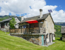"Rustico Tecc Berbis", 1-rums-hus. Rymlig, delvis sluttande tak, rustikt och mysigt inrett: öppet vardags-/matrum med öppen spis, matvrå och sat-TV. Utgång till terrassen. Öppet mellanplan med 2 sängar (80 cm, längd 200 cm). Öppet kök (4 kokplattor - glaskeramikhäll, brödrost, vattenkokare, mikrovågsugn, fondueset (ost )). Nedre våning: dusch/toalett. Veduppvärmning. Terrassmöbler, utegrill (flyttbar), vilstolar (2). Mycket vacker utsikt på bergen, dalen och landskapet. Till förfogande: hög barnstol, barnsäng för barn under 2 år (extra), hårtork. Notera: rökfritt hus. NL-00002457- Utrustning