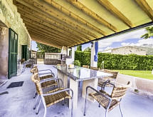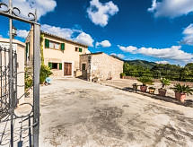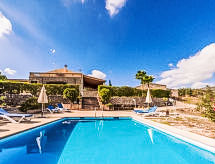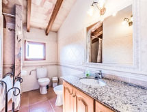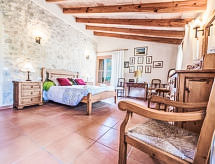 4 km från Campanet: Mycket stor, vacker finca "Sa Coma de Campanet", med 2 våningar, fristående, renoverad, omgiven av fält. Utanför orten, 5 km från centrumet av Campanet, lugnt, soligt läge, 2.5 km från skogsbrynet, 21 km från havet, 21 km från stranden. För privat bruk: vacker trädgård i olika nivåer med gräsmatta och planteringar, pool kantig (8 x 5 m, 100 - 200 cm djup, tillgång säsongsbunden: 01.Apr. - 31.Okt.). Sittplats, berså, pergola, trädgårdsmöbler, utegrill. I huset: Trådlös LAN [WLAN], cykelförråd, luftkonditionering, tvättmaskin. Parkering vid huset på tomten. Livsmedelsaffär 5.2 km, stormarknad 5.2 km, restaurang 4.8 km, bar 5 km, bageri 5 km, …minuts promenad till centrum 30, busshållplats 5.5 km, sandstrand 21 km, strand vid klippor 25 km. Sporthamn 22 km, marina 22 km, golfbana (18 hål) 31 km, tennis 4 km, cykelled 1 km. Notera: fordon rekommenderas. Lämplig för barnfamiljer, passande för äldre. Objekt passande för 6 vuxna tonårsgrupper endast på förfrågan. Av- och pålastning av bagage är möjligt vid semesterbostaden. Djur i området. Flygplats 47 km från huset.Interior