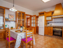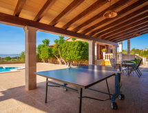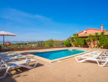 "Sa Tanca", 4-rums-villa 155 m2. Objekt passande för 8 vuxna. Rymlig och ljus, praktiskt och komfortabelt inredd: ingång. Utgång till trädgårdssittplatsen. Öppet stort vardags-/matrum med panoramafönster med 2 sovmöjligheter (2 x 90 cm, längd 190 cm), matbord, digital-TV, flatscreen TV och stereoanläggning. Utgång till trädgårdssittplatsen. 1 dubbelrum, fönster mot gården med 2 sängar (90 cm, längd 200 cm), luftkonditionering och varmluftsuppvärmning. 1 dubbelrum, fönster mot gården med 2 sängar (90 cm, längd 200 cm), luftkonditionering och varmluftsuppvärmning. 1 stort dubbelrum, fönster mot gården med 1 dubbelsäng (150 cm, längd 200 cm), badkar/bidé/toalett, luftkonditionering och varmluftsuppvärmning. Stort kök (ugn, diskmaskin, 3 kokplattor - glaskeramikhäll, mikrovågsugn, frys, elektrisk kaffemaskin) med matbord. Utgång till balkongen. Badkar/bidé/toalett. Stor trädgårdssittplats, berså. Terrassmöbler, utegrill, vilstolar (8), loggia. Vacker panoramautsikt på landskapet och orten. Till förfogande: tvättmaskin, strykjärn, hög barnstol, barnsäng för barn under 2 år, hårtork. Internet (Trådlös LAN [WLAN] , gratis). Garage på tomten vid huset. Lämpligt för barnfamiljer. 1 husdjur/hund tillåtet. ETV15026- Utrustning