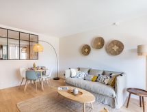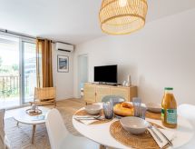 3-rums-lägenhet 60 m2 på 1. våningen. Fullständigt renoverad år 2022, vackert inredd: vardags-/matrum med TV (flatscreen TV). Utgång till terrassen. 1 rum med 1 fransk säng (160 cm, längd 200 cm), dusch. 1 rum med 1 fransk säng (160 cm, längd 200 cm). Kök (ugn, diskmaskin, 3 Induktionshäll, vattenkokare, mikrovågsugn, frys, elektrisk kaffemaskin, Kapslar till kaffemaskin (Nespresso) extra). Dusch/toalett, sep. Toalett. Luftkonditionering. Terrass 10 m2, sydostläge. Till förfogande: tvättmaskin, hårtork. Internet (Trådlös LAN [WLAN] , gratis). Parkeringsplats nr 34. Notera: rökfri lägenhet. Brandvarnare. Annonsering av en privatperson enligt artikel 155, IV, CGI. 83119005381MX- Kännetecken för boendet