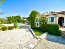 4-rums-hus 80 m2, sydvästläge. Vardags-/matrum 14 m2 med köksblock och sat-TV (flatscreen TV). 1 rum med 1 fransk säng (180 cm, längd 200 cm). Vardags-/matrum 20 m2 med sat-TV (flatscreen TV). Utgång till terrassen. Ingång med luftkonditionering. 1 rum med 1 fransk säng (180 cm, längd 200 cm). Öppet kök (4 kokplattor, ugn, mikrovågsugn, frys, elektrisk kaffemaskin). 2 duschar/toaletter. Terrass 30 m2. Vilstolar. Utsikt på swimming-poolen. Till förfogande: Internet (Trådlös LAN [WLAN] , gratis). 1 litet husdjur/hund tillåtet. Varje hus med vardags- / matplats, öppet kök och ett sovrum på bottenvåningen.- Utrustning