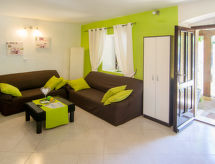 Parhus "Sara (PRC136)", med 2 våningar. 2 km från centrumet av Zbadanj, i utkanten, 6 km från centrumet av Poreč, 6 km från havet. För gemensamt bruk: tomt 700 m2 (inhägnad) med gräsmatta och träd. För privat bruk: pool (uppställbassäng) rund (3.5 m i diameter, 90 cm djup, tillgång säsongsbunden: 15.Maj. - 17.Sep.). Terrass, utegrill. I huset: internetanslutning, tvättmaskin. Parkering (för 2 bilar) på tomten. Affär 2 km, stormarknad 6 km, grusstrand 6 km. Marina 6 km. Videoövervakning av fastigheten.Interior