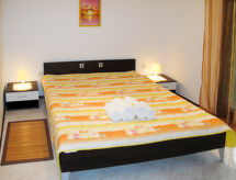 4-rums-ena hälften av ett parhus 135 m2 med 2 våningar. Vardags-/matrum med öppen spis, sat-TV, radio och DVD. Utgång till terrassen. 1 rum med 1 fransk säng (180 cm, längd 200 cm). Öppet kök (4 kokplattor, ugn, diskmaskin, mikrovågsugn, elektrisk kaffemaskin). Dusch/toalett. Veduppvärmning. Övre våning: ingång med luftkonditionering. 2 rum, till varje rum hör, 1 fransk säng (180 cm, längd 200 cm). Dusch/toalett. Luftkonditionering, varmluftsuppvärmning. Vilstolar. Till förfogande: ved (gratis), skötbord. Internet (Trådlös LAN [WLAN] , gratis). Notera: rökfritt hus. Max 1 husdjur/hund tillåtet.- Utrustning