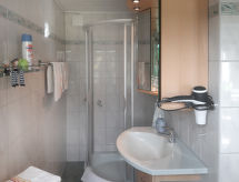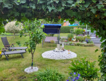 2-rums-bungalow 45 m2. Praktiskt inredd: 1 rum med 2 sängar och 1 dubbelsäng. Kombinerat kök och vardagsrum (2 kokplattor, diskmaskin, brödrost, vattenkokare, mikrovågsugn, elektrisk kaffemaskin) med matbord och kabel-TV (flatscreen TV), radio och CD. Dusch/toalett. Uppvärmning. Terrass täckt. Terrassmöbler, utegrill (flyttbar), vilstolar (2). Till förfogande: barnsäng, hårtork. Internet (Trådlös LAN [WLAN] , gratis). Notera: rökfritt hus. Privat entré, privat entré, brandvarnare.- Utrustning
