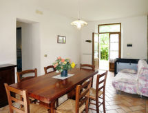 "Scoiattolo", 3-rums-lägenhet 70 m2, på bottenvåningen. Rustikt inredd: vardags-/matrum med 1 bäddsoffa för 2 personer och matbord. 1 dubbelrum. 1 rum med 1 säng och 1 x 2 våningssängar. Öppet kök (1 kokplatta, 3 gasflammor, brödrost). Utgång till trädgården. Dusch/toalett. Gasuppvärmning. Trädgårdssittplats. Terrassmöbler. Till förfogande: barnsäng. Internet (Trådlös LAN [WLAN] , gratis). Notera: 1 husdjur/hund tillåtet. Privat entré, privat entré.- Utrustning