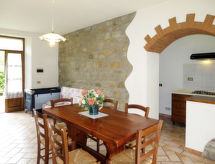 Lantgård "La Cascina degli Alberi". 5 lägenheter i residenset. 1 km från centrumet av Lisciano Niccone, 2 km från centrumet av Mercatale di Cortona, i en sluttning, 15 km från sjön. För gemensamt bruk: tomt 2'000 m2 med gräsmatta och träd, gräsplan, pool (10 x 5 m, tillgång säsongsbunden: 18.Maj. - 28.Sep.). Utedusch, utegrill, barnlekplats. I huset: tvättmaskin (för gemensamt bruk, extra). Parkering på tomten. Stormarknad 1 km, järnvägsstation "Terontola" 20 km. Golfbana 15 km.Interior