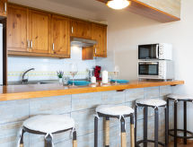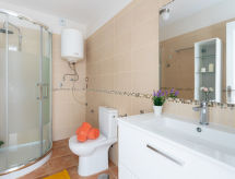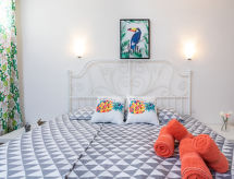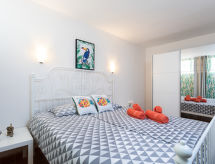 2-rums-lägenhet 53 m2, på bottenvåningen. Komfortabelt inredd: vardags-/matrum med 1 bäddsoffa (150 cm, längd 190 cm), TV. Utgång till terrassen. 1 rum med 1 dubbelsäng (180 cm, längd 190 cm). Öppet kök (ugn, diskmaskin, 3 Induktionshäll, brödrost, mikrovågsugn, frys, elektrisk kaffemaskin). Dusch/toalett. Ingen uppvärmningsmöjlighet. 2 terrasser. Terrassmöbler. Begränsad utsikt på havet. Till förfogande: tvättmaskin, strykjärn, hög barnstol, barnsäng, hårtork. Internet (Trådlös LAN [WLAN] ). Notera: lämpligt för barnfamiljer. Rökfritt hus. 000006501E1800059857- Utrustning