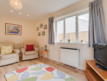 Stort, vackert, komfortabelt stuga "Seahaven". I centrum av Croyde, lugnt läge, 600 m från havet, 300 m från stranden. För privat bruk: trädgård med gräsmatta. Sittplats, trädgårdsmöbler, parkering. Affär 1 km, bar 1 km, sandstrand "Croyde" 300 m. Golfbana (18 hål) 3.5 km. Närbelägna sevärdheter: Baggy Point 3 km, Elliot Gallery 7 km, Watermouth Castle 20 km. Notera: fordon rekommenderas.Interior