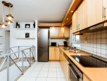 "Sheltering Sky", 4-rums-lägenhet i två våningar 100 m2 med 2 våningar. Rymlig och ljus, komfortabelt och vackert inredd: öppet vardags-/matrum med matbord och TV (flatscreen TV). Utgång till balkongen. 1 dubbelrum med 1 dubbelsäng. Utgång till balkongen. 1 dubbelrum med 1 dubbelsäng. Öppet kök (ugn, diskmaskin, 4 kokplattor - glaskeramikhäll, mikrovågsugn, elektrisk kaffemaskin). Badkar/toalett. Luftkonditionering. Nedre våning: (stege utan räcke) 1 dubbelrum med 1 bäddsoffa för 2 personer. Utgång till balkongen. Luftkonditionering. 2 stora balkonger. Mycket vacker utsikt på havet och staden. Till förfogande: tvättmaskin, strykjärn, hårtork. Internet (Trådlös LAN [WLAN] , gratis). Notera: rökfritt hus. 00001367574- Utrustning
