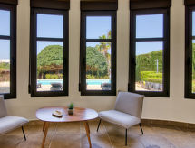 Mycket stor, mycket vacker, mycket komfortabel villa "Siegfried", med 2 våningar. I ortsdelen Cansalades Park Monte Olimpo 5 km från centrumet av Jávea - El Arenal, 8 km från centrumet av Moraira, lugnt, soligt läge, 5 km från havet, 5 km från stranden. För privat bruk: vacker, välskött trädgård med gräsmatta och träd, pool kantig (10 x 5 m, 80 - 210 cm djup, tillgång säsongsbunden: 01.Jan. - 31.Dec.) med innertrappor. Utedusch, pergola, terrass, trädgårdsmöbler, parkering på tomten. Stormarknad 2.5 km, restaurang 1 km, bar 2.5 km, bageri 2.5 km, café 2.5 km, sandstrand "El Arenal" 5 km, stenstrand "La Granadella" 10 km. Sporthamn 6 km, marina 6 km, golfbana 3 km, surfskola 5 km, seglarskola 5 km. Notera: fordon rekommenderas. Ägaren accepterar inga ungdomsgrupper.Interior