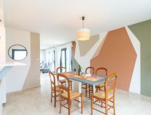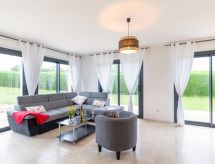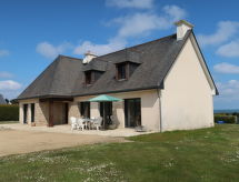 "Sillon de Talbert", 4-rums-hus på bottenvåningen. Ljus, vackert inrett: vardags-/matrum med panoramafönster med öppen spis (endast för dekoration), matbord och TV (flatscreen TV). 3 rum, till varje rum hör, 1 fransk säng (140 cm, längd 190 cm). Öppet kök (diskmaskin, 4 kokplattor - glaskeramikhäll, brödrost, vattenkokare, mikrovågsugn, elektrisk kaffemaskin) med matbord. Utgång till terrassen. Badkar, sep. Toalett, dubbelt handfat. Stor terrass 110 m2, norrläge och sydläge. Terrassmöbler, utegrill, vilstolar (2), förråd. Utsikt på havet. Till förfogande: tvättmaskin, torktumlare, strykjärn, barnsäng. Internet (Trådlös LAN [WLAN] , gratis). Notera: rökfritt hus. 2 husdjur/hundar tillåtna. Brandvarnare.- Utrustning
