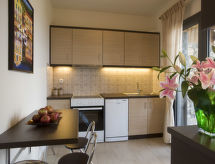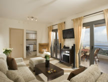 "Solfez", 2-rums-villa 94 m2 med 3 våningar. Rymlig och ljus, komfortabelt och vackert inredd: öppet vardags-/matrum med öppen spis, matbord och sat-TV (flatscreen TV), CD och DVD. Utgång till balkongen, till terrassen, till swimmingpoolen. Öppet kök (4 kokplattor, ugn, diskmaskin, brödrost, vattenkokare, mikrovågsugn, elektrisk kaffemaskin). Luftkonditionering. Nedre våning: (stege utan räcke). Badkar/toalett. Luftkonditionering. Övre våning: 1 dubbelrum med 1 dubbelsäng, dusch/toalett och TV (flatscreen TV). Utgång till balkongen. Luftkonditionering. Stor balkong, stor terrass täckt. Utegrill. Vacker panoramautsikt på havet och viken. Till förfogande: tvättmaskin, torktumlare, kassaskåp, strykjärn, hårtork. Internet (Trådlös LAN [WLAN] , gratis). Notera: rökfritt hus. 1040Κ123Κ0342100- Kännetecken för boendet