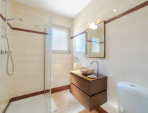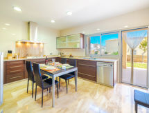 Barcarés 1 km från Alcúdia: Mycket stor, mycket modern villa "Son Jil", med 2 våningar, fristående, byggnadsår 2005. Lugnt, soligt läge villaområde, 2 km från skogsbrynet, 60 m från havet, gata att korsa. För privat bruk: stor, välskött trädgård med gräsmatta och planteringar, pool kantig (8 x 4 m, 150 - 150 cm djup, tillgång säsongsbunden: 01.Jan. - 31.Dec.) med salt-elektrolys. Utedusch, sittplats, berså, pergola, trädgårdsmöbler, utegrill. I huset: internetanslutning, Trådlös LAN [WLAN], centralvärme, luftkonditionering, tvättmaskin. Parkering vid huset på tomten, allmänt parkeringshus, allmän parkering på gatan. Affär 1 km, stormarknad 1.2 km, köpcentrum 45 km, restaurang, bar 160 m, område endast för gående 50 m, …minuts promenad till centrum 15, busshållplats 1.5 km, färja 3 km, sandstrand "Platja Es Morer Vermell" 550 m, strand vid klippor "Platja Es Barcarés" 60 m. Sporthamn 250 m, marina 3 km, golfbana (18 hål) 6 km, tennis 2.5 km, ridstall 2.5 km, sportcentrum 2.5 km, vandringsleder från huset 1 km, cykelled 700 m, lekplats 500 m. Närbelägna sevärdheter: Ermita de la Victoria, Barcarés, Manresa, Sa Marina, Es Malpas. Ciutat Romana de Pollentia, Alcudia. Port d'Alcúdia, Port de Pollença - Pollença, North Beaches. Vandringsområden Sa Talaia, Es Puig de Sant Martí, Serra Tramuntana Pollença. Notera: lämplig för barnfamiljer, passande för äldre. Objekt passande för 8 vuxna tonårsgrupper endast på förfrågan. Flygplats 60 km från huset.Interior