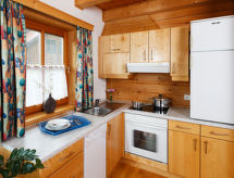 3-rums-chalet 70 m2 med 2 våningar. 1 dubbelrum med dusch/toalett. Vardags-/matrum med braskamin, matbord och sat-TV (flatscreen TV), radio. Öppet kök (ugn, diskmaskin, 4 kokplattor - glaskeramikhäll). Övre våning: 1 dubbelrum med dusch/toalett. Terrass. Terrassmöbler. Mycket vacker utsikt på dalen. Till förfogande: telefon. Internet (Trådlös LAN [WLAN] , extra). Parkeringsplats. 1 husdjur/hund tillåtet.- Utrustning