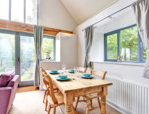 Modernt, mysigt stuga "Southills". I utkanten Cornworthy, i det gröna. Parkering vid huset. Affär 4.8 km, bar 1.6 km. Närbelägna sevärdheter: Dartington Hall Gardens, Woodlands Family Theme Park, The Summerhouse, Dartmouth. Notera: fordon rekommenderas.Interior