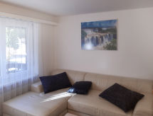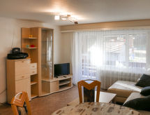 "Sportina 1.OG", 3-rums-lägenhet på 1. våningen. Mysigt inredd: vardags-/matrum med sat-TV. Utgång till balkongen. 1 dubbelrum. 1 rum med 2 sängar. Öppet kök (ugn, diskmaskin, 4 kokplattor - glaskeramikhäll, frys). Badkar/dusch/toalett. Liten balkong. Balkongmöbler. Vacker utsikt på bergen, dalen och orten. Till förfogande: Internet (Trådlös LAN [WLAN] , gratis). Parkeringsplats vid huset. Notera: rökfri lägenhet. Max 1 litet husdjur/hund tillåtet.- Kännetecken för boendet