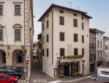Flerfamiljshus "Squisleep", med 4 våningar, renoverat. I centrum av San Daniele del Friuli, centralt läge, i hjärtat av staden. I huset: Trådlös LAN [WLAN], cykelförråd. Allmänt parkeringshus på 300 m avstånd, allmän parkering på gatan extra. Affär 5 m, stormarknad 650 m, restaurang 100 m, bar 5 m, järnvägsstation "Udine" 24 km, sandstrand "Lignano" 67 km, stenstrand "Fiume Tagliamento a Pinzano" 8 km, utomhusbad 15 km, simhall 15 km. Närbelägna sevärdheter: Duomo di San Daniele del Friuli 20 m, Grotte di Pradis 23 km. Notera: Hiss saknas. Av- och pålastning av bagage är möjligt vid semesterbostaden.Interior