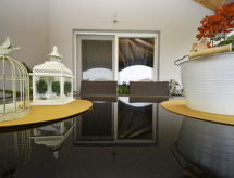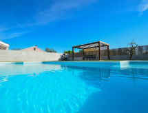 4-rums-hus 140 m2, sydläge. Vardags-/matrum 50 m2 med kabel-TV (flatscreen TV), luftkonditionering. Utgång till terrassen. 1 rum med 1 fransk säng (180 cm, längd 200 cm). Utgång till balkongen. 1 rum med 1 fransk säng (180 cm, längd 200 cm). 1 rum med 2 sängar (90 cm, längd 200 cm), TV (flatscreen TV). Öppet kök (4 kokplattor, ugn, diskmaskin, mikrovågsugn, frys, elektrisk kaffemaskin). Badkar/toalett, dusch/toalett. Balkong 4 m2, terrass 40 m2, täckt. Terrassmöbler, utegrill (flyttbar), vilstolar. Utsikt på swimming-poolen. Till förfogande: hårtork. Internet (Trådlös LAN [WLAN] , gratis).- Aktiviteter i närheten