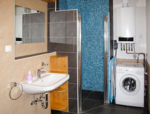 4-rums-ena hälften av ett parhus 86 m2 med 2 våningar. Ljus, vackert och med mycket trä inredd: vardags-/matrum med matbord, sat-TV, stereoanläggning och DVD. Utgång till terrassen. Öppet kök (ugn, diskmaskin, 4 kokplattor - glaskeramikhäll, brödrost, vattenkokare, mikrovågsugn, elektrisk kaffemaskin). Dusch/toalett. Övre våning: 1 rum med snedtak med 1 dubbelsäng och sat-TV. 2 rum med snedtak, till varje rum hör 2 sängar. Dusch/toalett. Gasuppvärmning, golvvärme. Terrass. Terrassmöbler, vilstolar (2). Till förfogande: tvättmaskin, bastu, hög barnstol, barnsäng. Notera: rökfritt hus. Brandvarnare, brandsläckare.- Utrustning