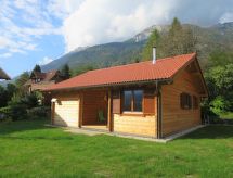 3-rums-chalet 60 m2. Objekt passande för 4 vuxna. Med mycket trä inrett: vardags-/matrum med sat-TV och vedugn. Utgång till loggian. 1 dubbelrum med 1 dubbelsäng. 1 rum med 2 sängar. Öppet kök (ugn, diskmaskin, 4 kokplattor - glaskeramikhäll, brödrost, vattenkokare, elektrisk kaffemaskin). Dusch, sep. Toalett. Vilstolar (2), loggia. Till förfogande: tvättmaskin. Notera: rökfritt hus. Brandvarnare.- Utrustning