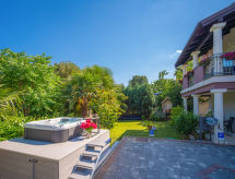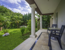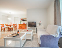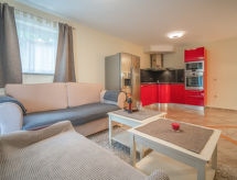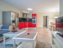 2-rums-lägenhet 50 m2, på bottenvåningen. Modernt inredd: vardags-/matrum med 2 bäddsoffor (90 cm, längd 180 cm), sat-TV. Utgång till terrassen. 1 rum med 1 fransk säng (140 cm, längd 200 cm), dusch/toalett. Öppet kök (ugn, diskmaskin, 4 kokplattor - glaskeramikhäll, vattenkokare, mikrovågsugn, frys, elektrisk kaffemaskin). Terrass 15 m2, täckt. Terrassmöbler. Till förfogande: Internet (Trådlös LAN [WLAN] ). Notera: privat entré, privat entré.- Utrustning