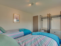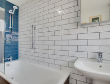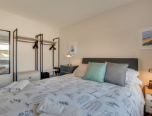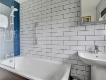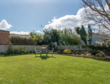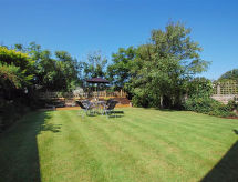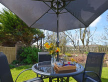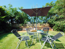 3-rums-stuga. Rymlig och ljus, komfortabelt och smakfullt: öppet vardagsrum med TV, flatscreen TV och DVD. 1 dubbelrum med 1 dubbelsäng. 1 rum med 2 sängar. Öppet kök (4 kokplattor, ugn, diskmaskin, mikrovågsugn, frys) med matbord. Badkar/dusch/toalett. Uppvärmning. Terrassmöbler. Vacker utsikt på trädgården. Till förfogande: tvättmaskin, torktumlare. Internet (Trådlös LAN [WLAN] , gratis). Notera: rökfritt hus.- Kännetecken för boendet