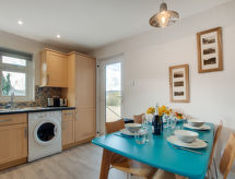 Stort, vackert, komfortabelt stuga "Swell". I centrum av Croyde, lugnt läge, 600 m från havet, 300 m från stranden. För privat bruk: trädgård med gräsmatta. Sittplats, trädgårdsmöbler, parkering nr 2. Affär 1 km, bar 1 km, busshållplats "Croyde, Downend" 180 m, sandstrand "Croyde" 300 m. Golfbana (18 hål) 3.5 km. Närbelägna sevärdheter: Baggy Point 3 km, Elliot Gallery 7 km, Watermouth Castle 20 km. Notera: fordon rekommenderas.Interior