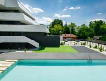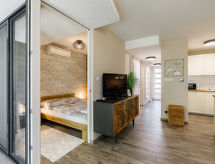 Balatonszemes 7 km från Balatonlelle: Modernt, vackert flerfamiljshus, byggnadsår 2020. I orten, centralt läge, 100 m från sjön. För gemensamt bruk: pool kantig uppvärmd (8 x 20 m, tillgång säsongsbunden: 15.Maj. - 15.Sep.). I huset: internetcafé, Trådlös LAN [WLAN], hiss, solterrass. Livsmedelsaffär 200 m, restaurang 100 m, järnvägsstation 450 m, grässtrand 300 m. Sporthamn 100 m. Närbelägna sevärdheter: Tihany 14 km.Interior